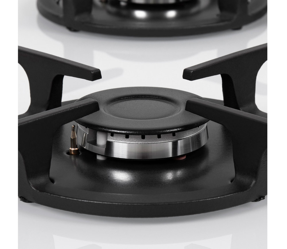 Четыре стандартные конфорки мощностью 1000 Вт, 1700 Вт, 1700 Вт и 2600 Вт укомплектованы круглыми чугунными решетками.