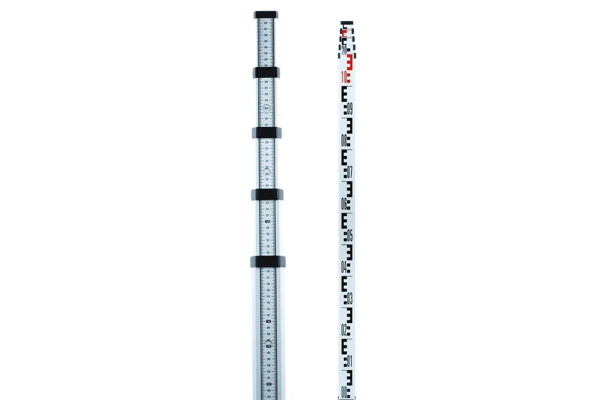 Рейка нивелирная телескопическая INSTRUMAX TS-500 - телескопическая рейка, выполненная из алюминиевого сплава. Металлизированная кнопка надежно фиксирует раскладные секции и служит. Шкала ''Е'' с лицевой стороны красно/черного цвета и миллиметровая шкала с оборотной стороны. Миллиметровая шкала начинает отсчет от нижней части рейки, шкала нанесена на всех 5-х секциях рейки снизу до верху.