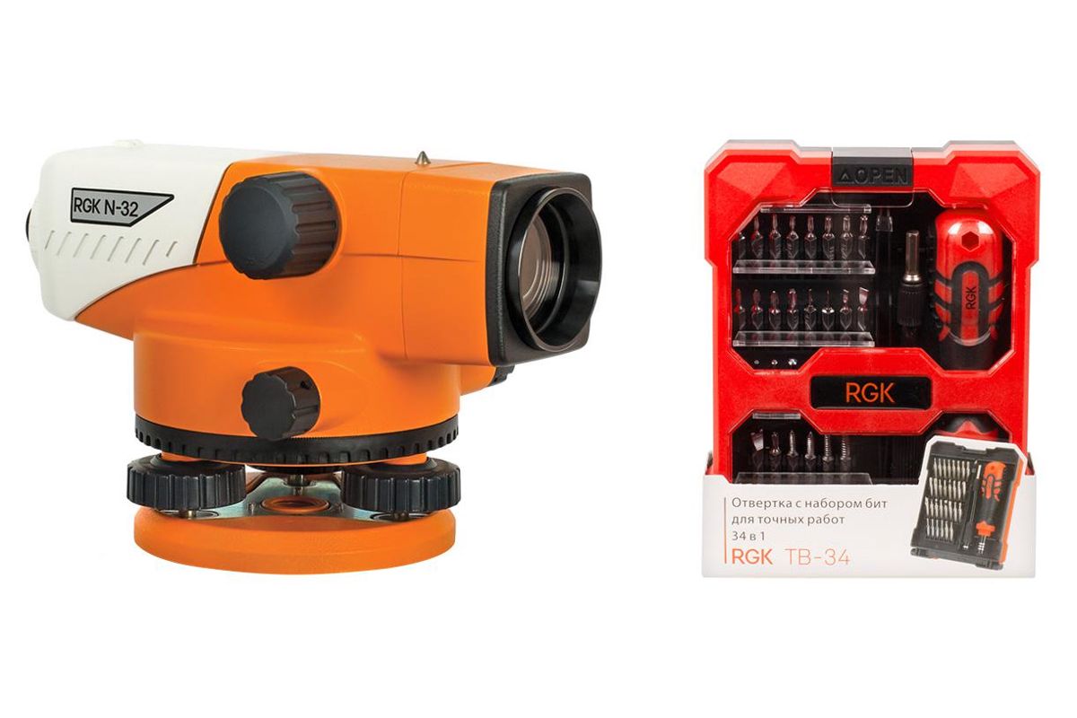 Набор RGK Нивелир оптический N-32 +Отвертка TB-34 (34 в 1)