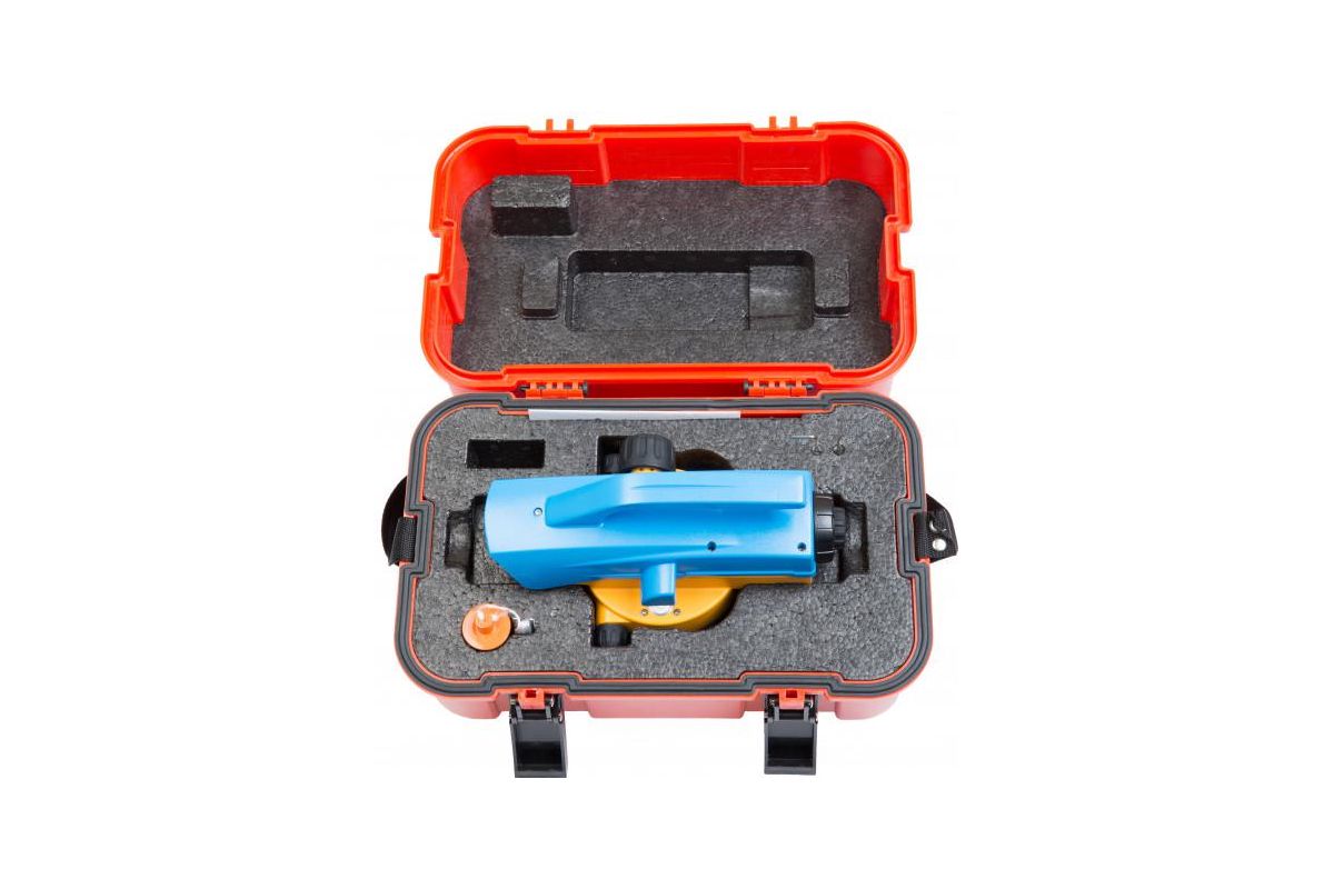 - Прибор поставляется в пластиковом кейсе в комплекте с нитяным отвесом и юстировочными инструментами.