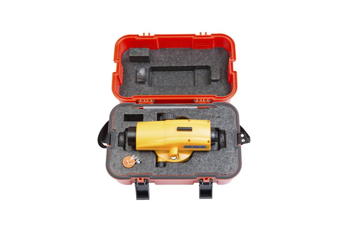 - Прибор поставляется в пластиковом кейсе в комплекте с нитяным отвесом и юстировочными инструментами.