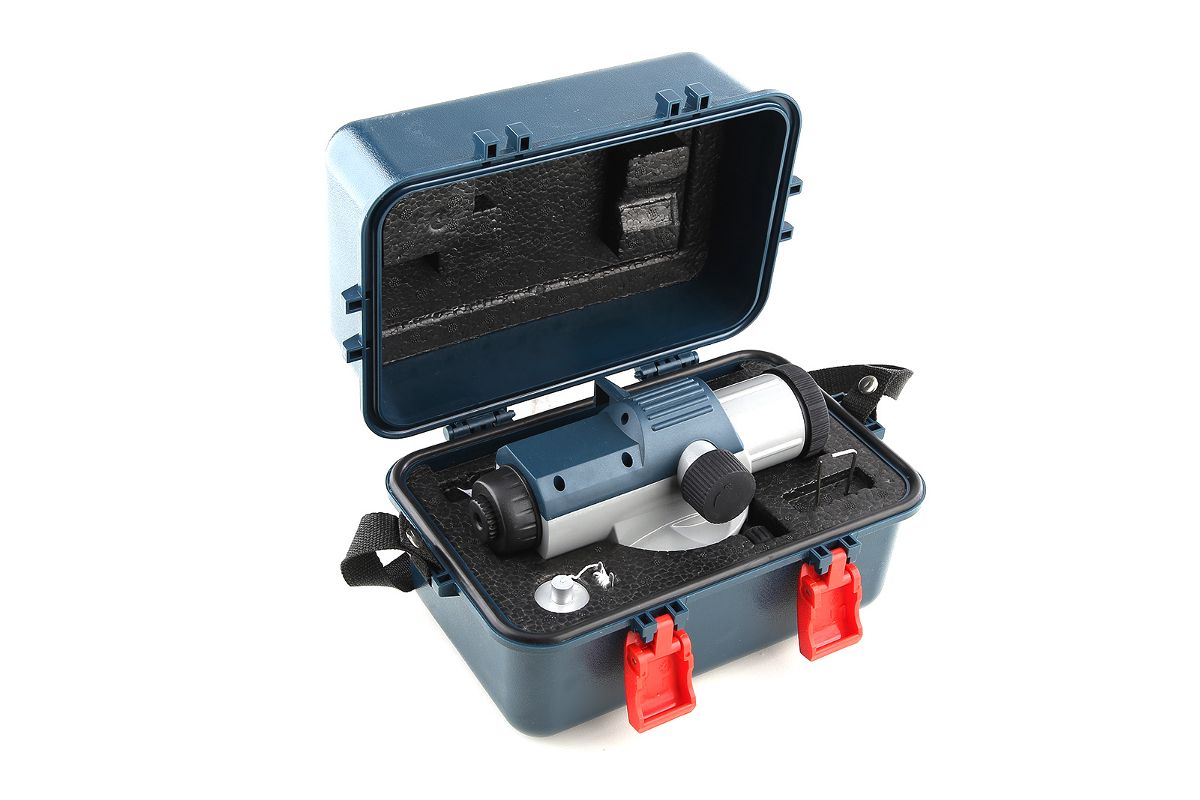 BOSCH GOL 32 D – оптический нивелир для геодезических, дорожных и строительных работ. Прост и удобен в обращении – быстро выравнивается нажатием одной кнопки. Оснащен коллиматором для грубой настройки и пентапризмой для удобства считывания показаний уровня.