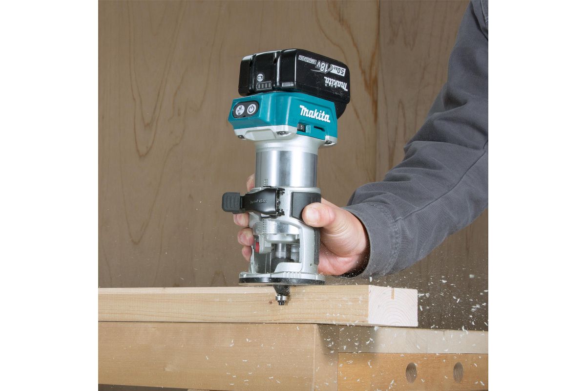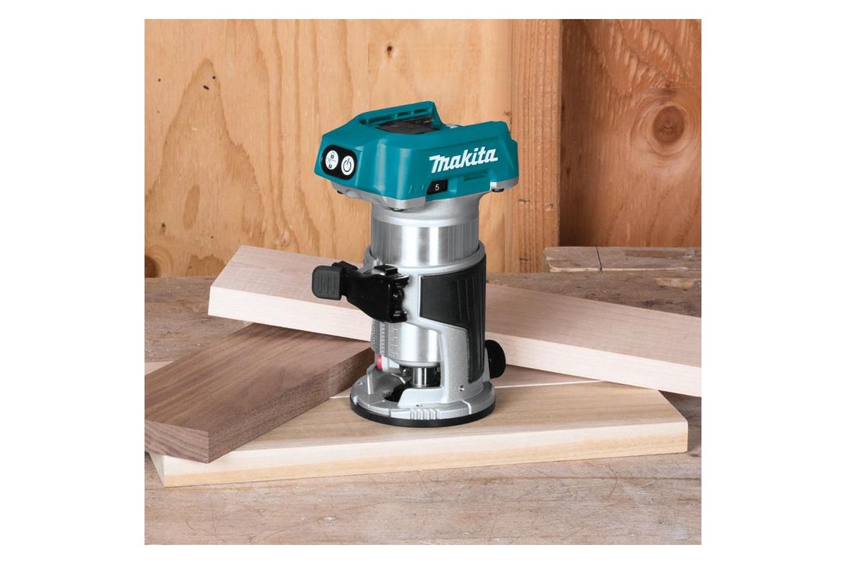 Фрезер Makita DRT50Z предназначен для снятия фасок с поверхностей различных материалов, таких как алюминий, пластик, дерево. С его помощью можно резать материал глубиной до 40 мм. Высокая скорость вращения позволяет достигать качественной обработки поверхности. Плавный пуск, регулировка частоты вращения и электронный контроль частоты вращения под нагрузкой способствуют комфортному рабочему процессу.
