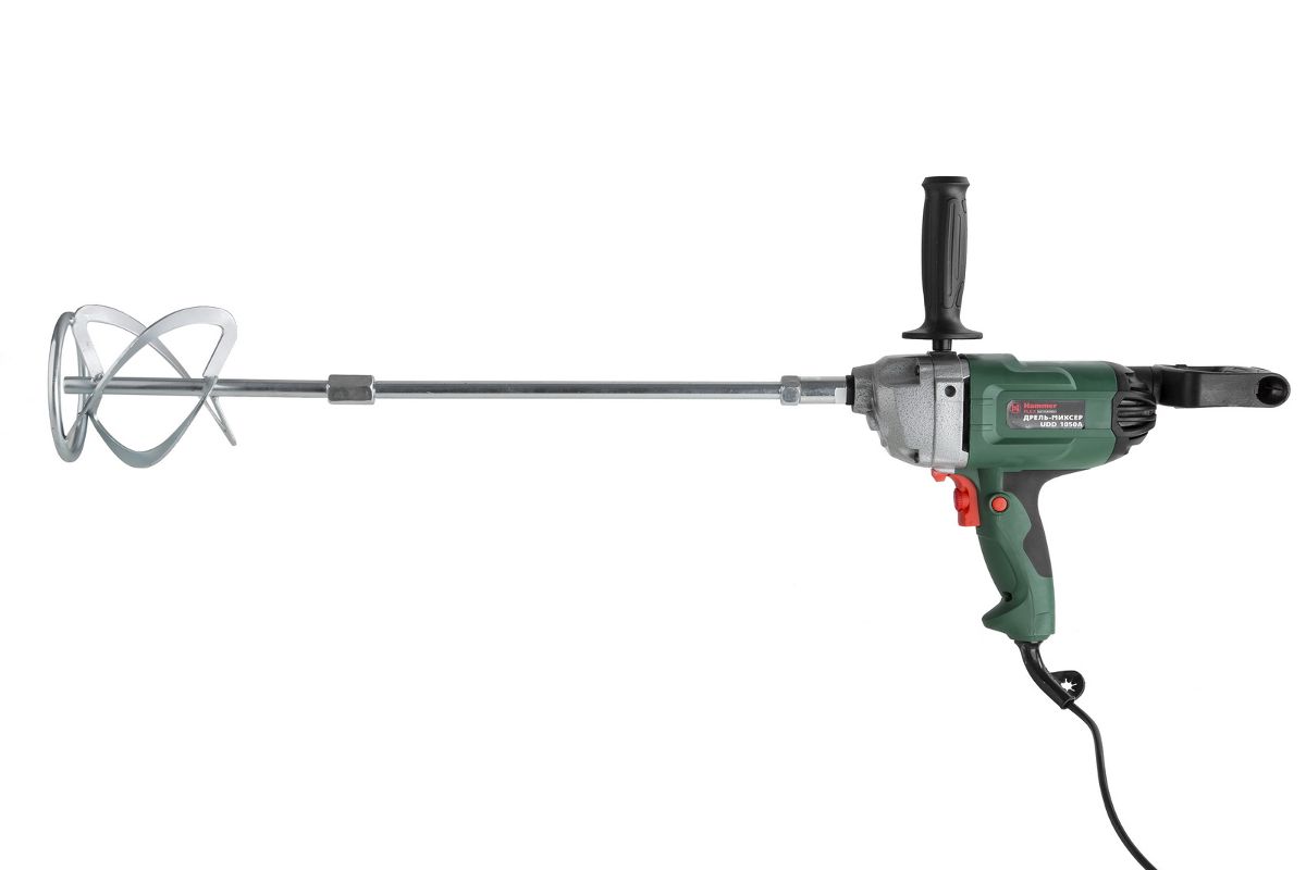 Мощность – 1050 Вт. Инструмент сверлит отверстия диаметром до 32 мм в дереве и до 13 мм в металле, размешивает строительные растворы.