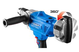 Боковая рукоятка ставится с любого бока, задняя поворачивается на 360о. Удобно работать при любом хвате инструмента.