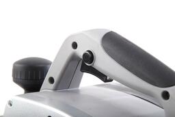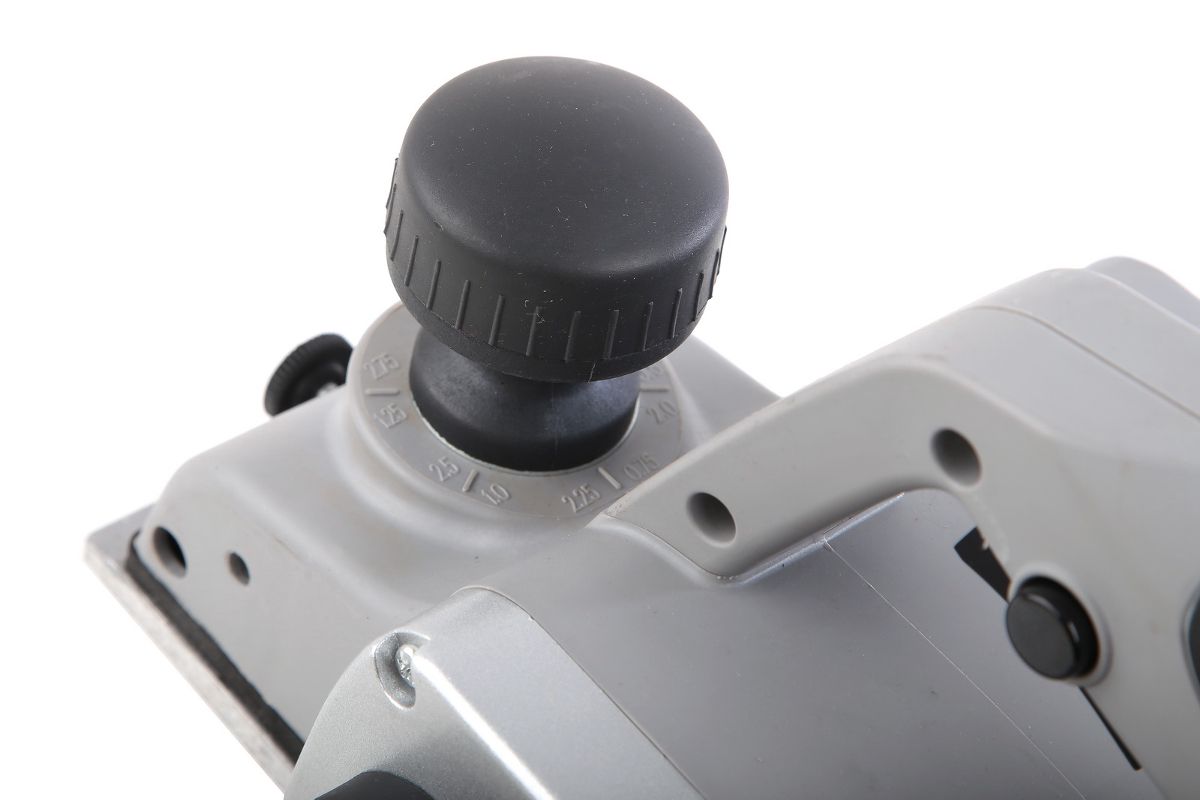 Он хорошо сбалансирован, оснащен прочными литыми деталями и длинной базой. Для более комфортной работы он оборудован эффективной системой выброса стружки, а высокая скорость вращения фрезы полностью обеспечивает надлежащую обработку поверхностей деталей. Модель также оснащена возможностью плавно регулировать толщину снимаемой стружки и блокировать рубанок от случайного включения. В комплекте с рубанком поставляется приспособление для его стационарной установки.