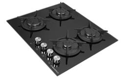 Панель выполнена из закаленного стекла черного цвета. В данной модели установлены высококачественные итальянские горелки SABAF.Четыре стандартные конфорки мощностью 1000 Вт, 1700 Вт, 1700 Вт и 2600 Вт укомплектованы круглыми чугунными решетками.