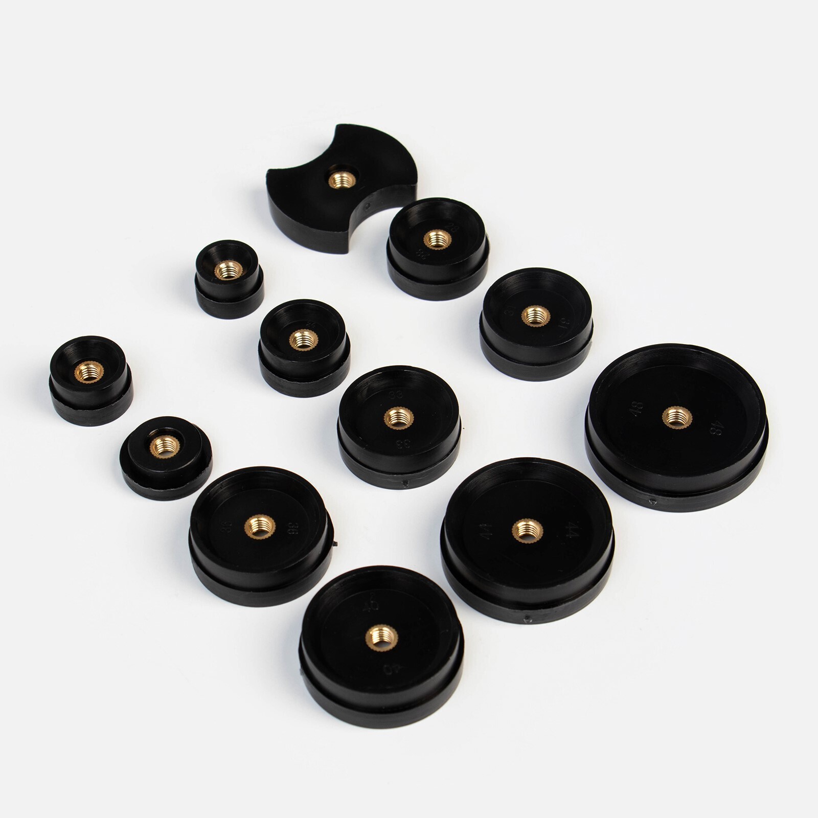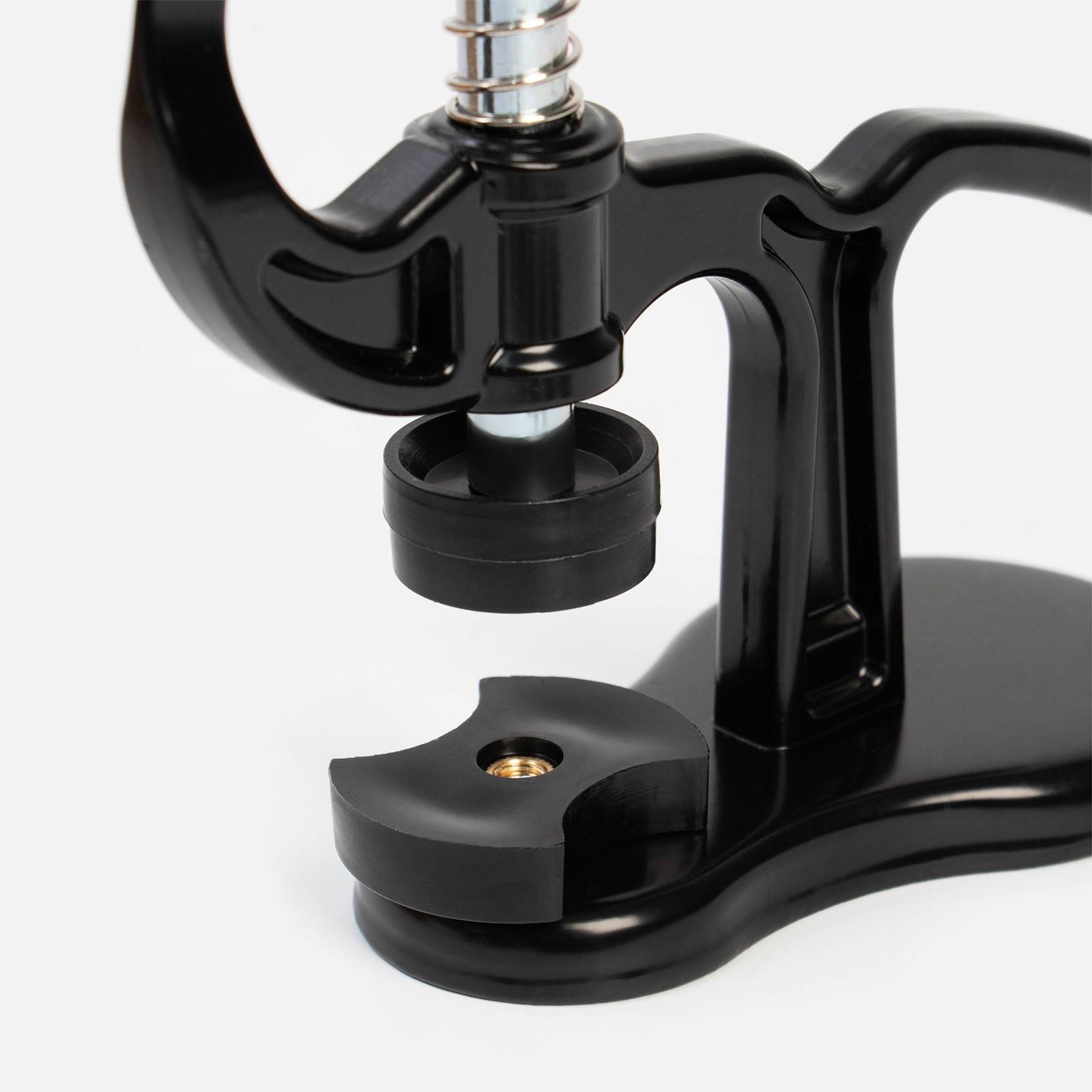 Пресс для замены задней крышки часов. В комплекте 12 винтовых фторопластовых насадок разного размера (18 - 50 мм), что позволяет использовать пресс с часами любого размера и формы.