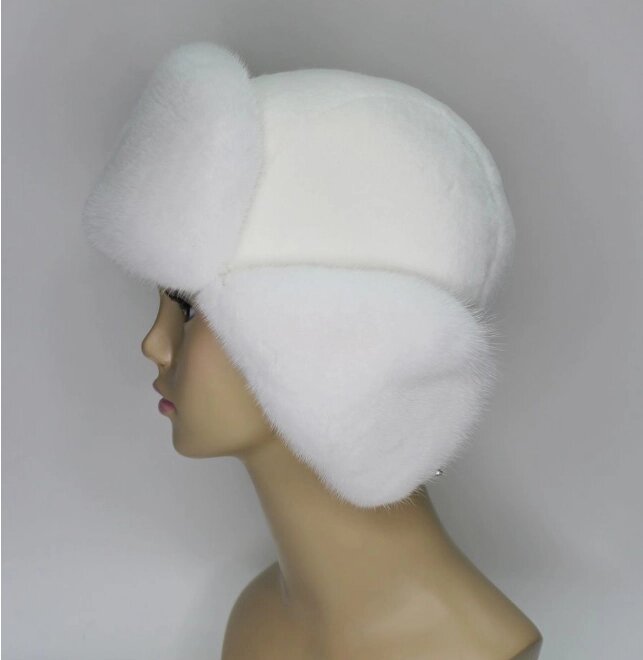 Шапка - ушанка меховая, белая / зимний головной убор, экомех