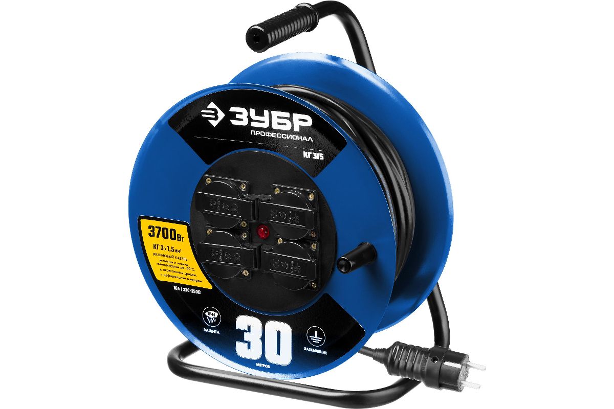 Удлинитель ЗУБР 55080-30 на катушке ''КГ 315'', 30 м, 3700 Вт, 4 а, IP44, КГ 3х1,5 кв мм