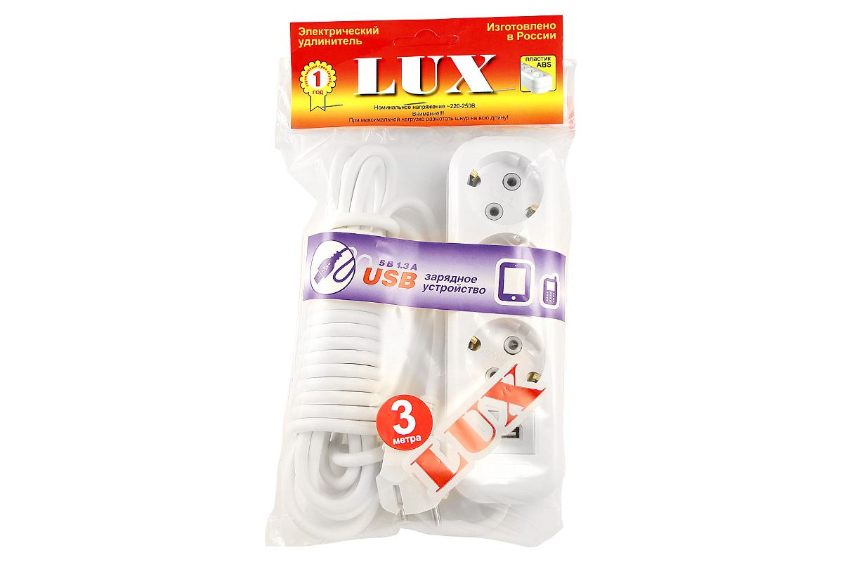 Удлинитель LUX У3-Е-USB-03 ПВС 3х0,75
