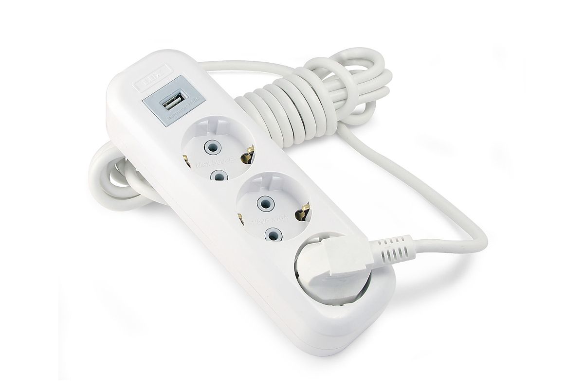 Стандартный бытовой удлинитель рассчитанный на подключение к сети переменного тока от одного до трех приборов одновременно.