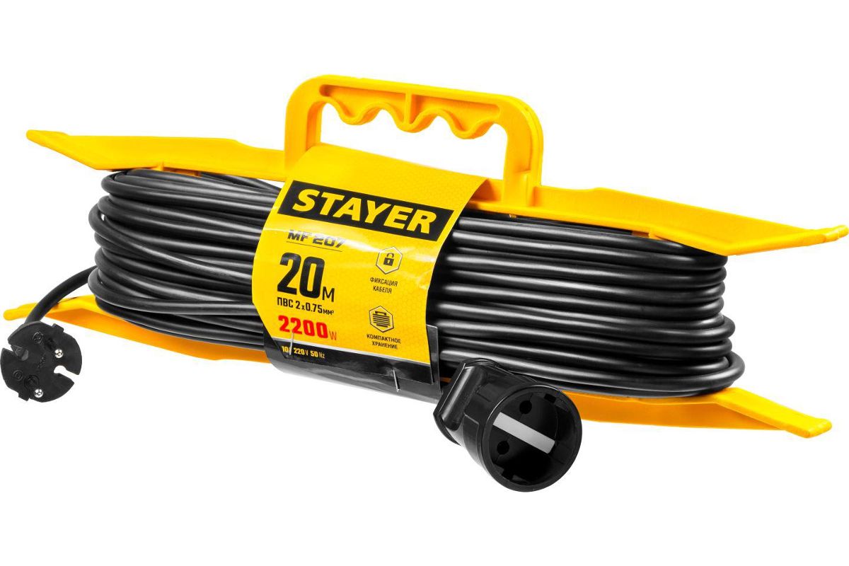 Удлинитель STAYER ''MF 207'' 55018-20_z01 на рамке 20м, 2200Вт, 1 о, ПВС 2х0,75 мм2