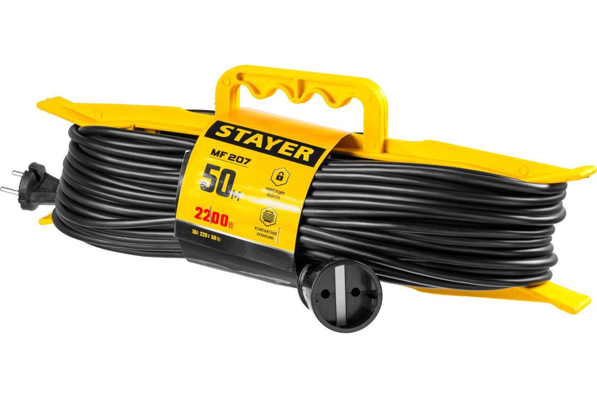 Удлинитель STAYER ''MF 207'' 55018-50_z01 на рамке 50м, 2200Вт, 1 о, ПВС 2х0,75 мм2