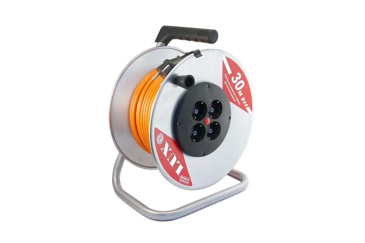 Удлинитель LUX 40130 К4-Е-30 ПВС 3x1.5 30м 16А 4 розетки с з/к на металл. катушке