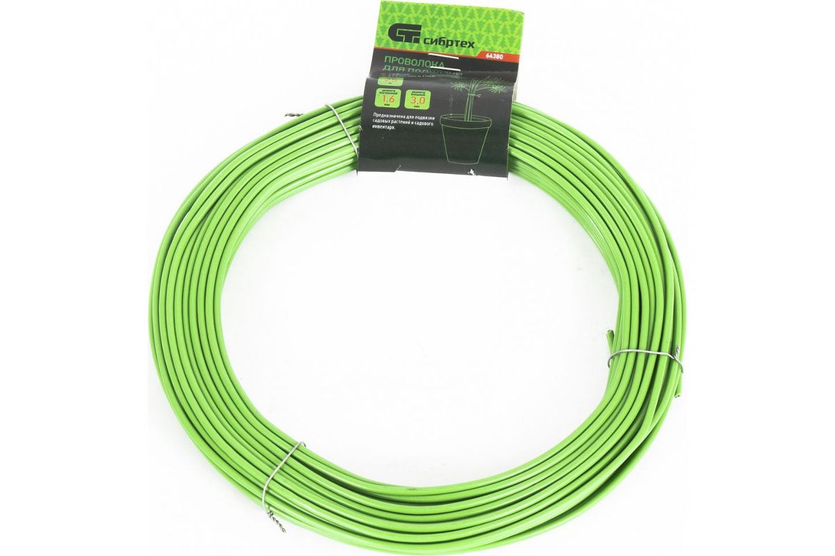 Проволока СИБРТЕХ 64380 для подвязки стальная в пвх (зелёный) 25м внутр. 1.6мм / внеш. 3.0мм Для подвязки садовых растений и хозяйственных нужд