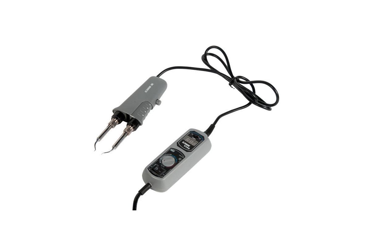 Термопинцет питается от сети, у него цифровое управление, а с помощью установленного регулятора можно выставить температуру нагрева.