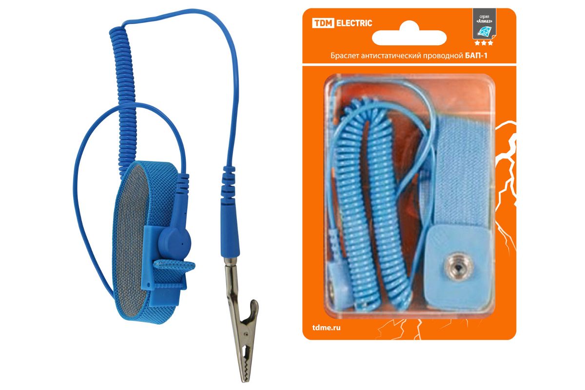 Браслет ТДМ БАП-1 антистатический проводной алмаз • Антистатический браслет обеспечивает защиту микроэлектроники во время пайки
