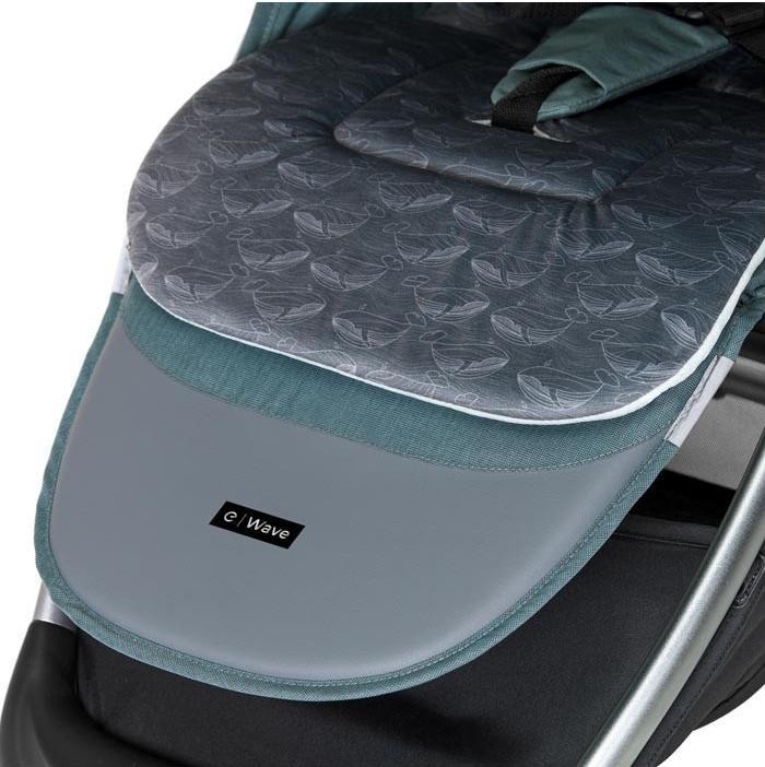 Колеса коляски Wave 2022 не обслуговуються (гелеві), оснащені системою амортизації, передні колеса повністю поворотні та мають блокаду. Унікальною перевагою є дуже місткий кошик для аксесуарів та покупок. Додатковою перевагою моделі Wave 2022 є нова вагова категорія 0-22 кг.