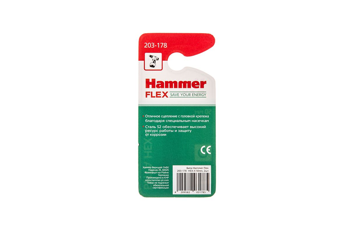 Бита Hammer Flex 203-178 HEX-4 50мм, 2шт.