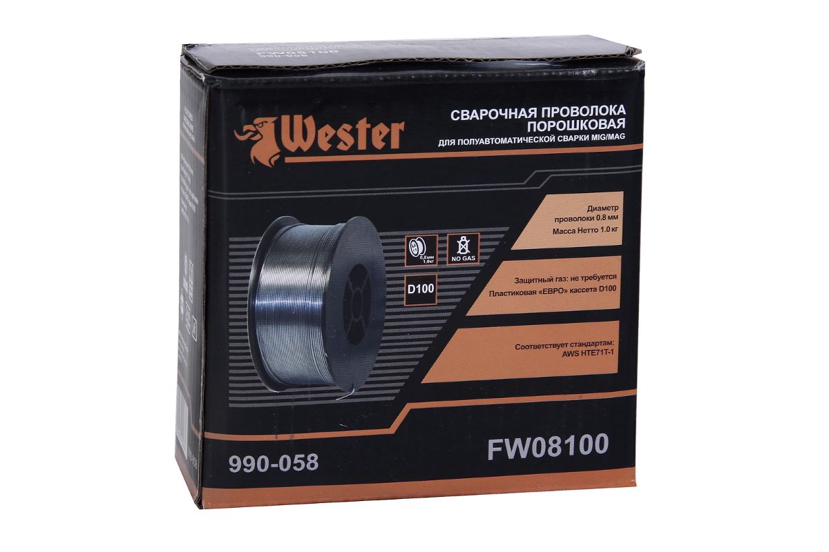 Проволока сварочная WESTER FW 08100 Ф0.8мм 1кг, флюсовая/порошковая, катушка Ф100мм