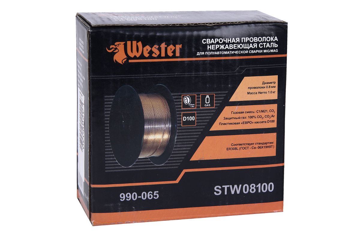 Проволока сварочная WESTER STW 08100 Ф0.8мм 1кг, нержавеющая, катушка Ф100мм
