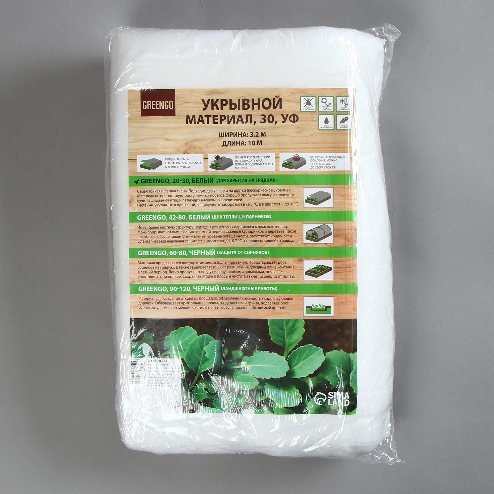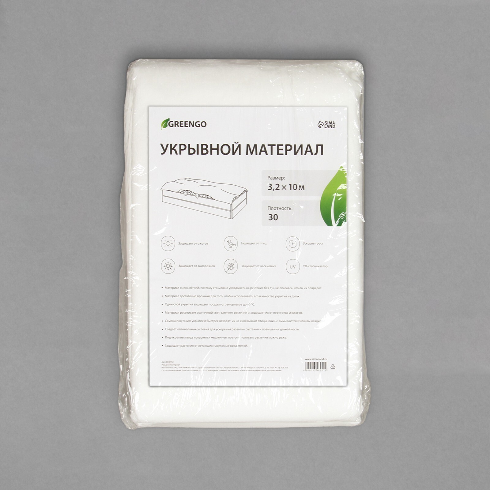 Материал укрывной, 10 × 3,2 м, плотность 30 г/м², с УФ-стабилизатором, белый, Greengo, Эконом 20%