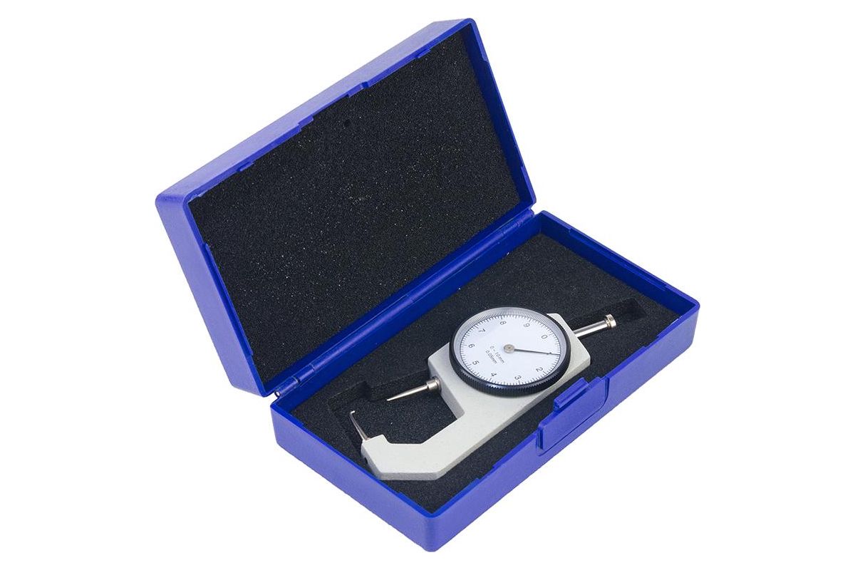 Толщиномер индикаторный МЕГЕОН 19010 с ценой деления 0,05мм предназначен для измерений листовых материалов помещенных между измерительными щупами.