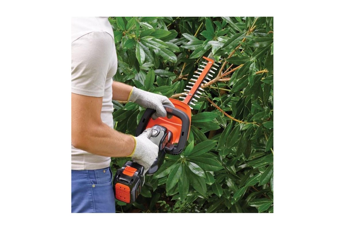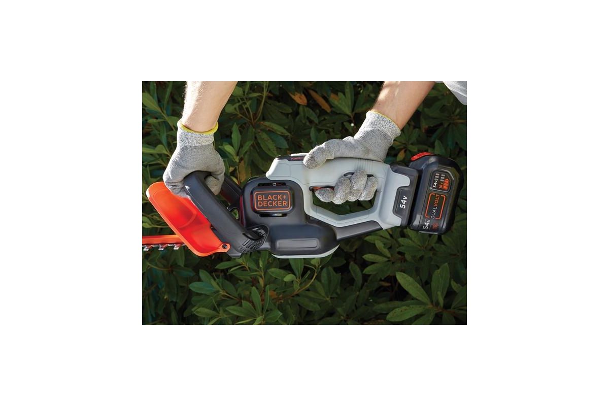 Кусторез BLACK & DECKER GTC5455PC-QW пригодится для стрижки кустов, придания формы живой изгороди. Работает от Li-Ion аккумулятора 54 В. Срезает ветки толщиной до 19 мм.