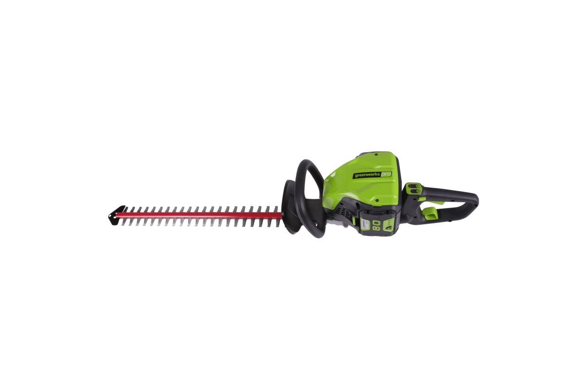 Кусторез аккумуляторный Greenworks из линейки техники 80 вольт (модель GD80HT) - это отличная замена электро или бензокусторезу, которая с легкостью справиться с подрезкой деревьев, кустарника или живой изгороди.