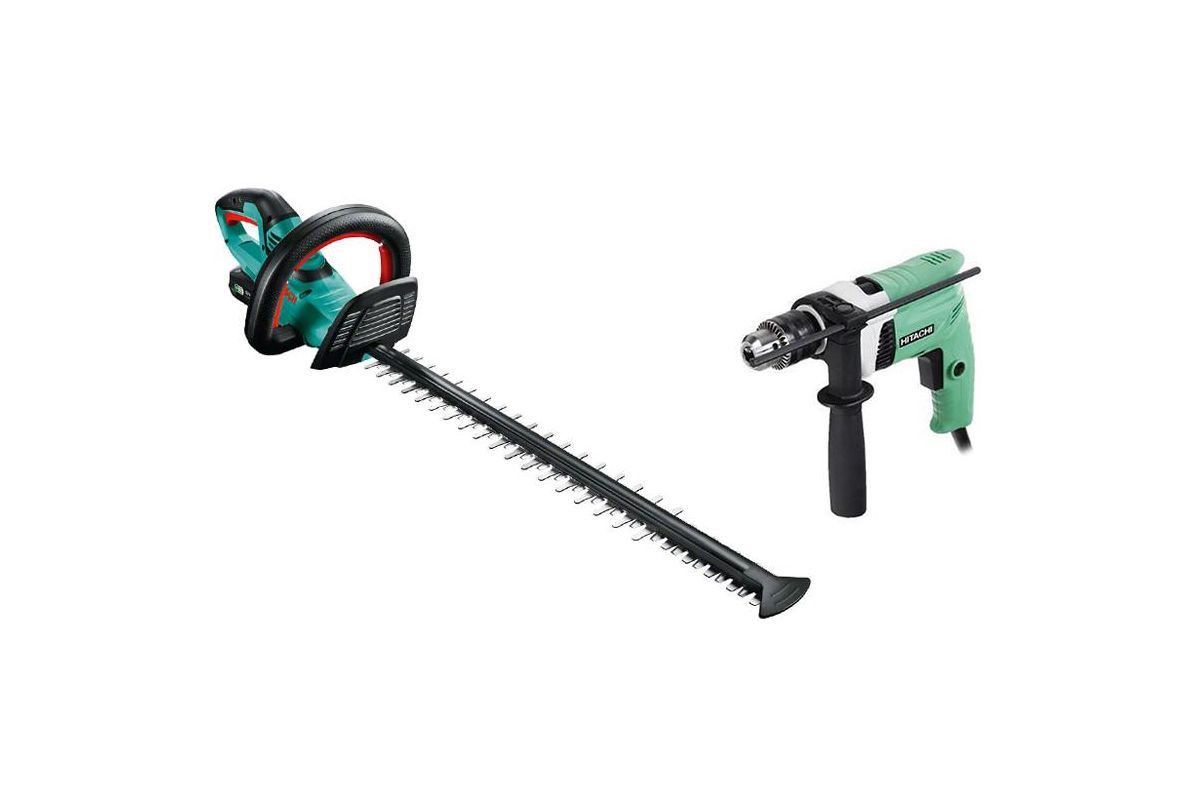 В состав набора входят: Кусторез BOSCH AHS 55-20 Li + секатор (0600849G0B) Акк.+ЗУ 18В Li-Ion 2.5Ач, Дрель ударная HITACHI DV16SSNA ударная дрель 600Вт 2900 оборотов в минуту 29000 уд/мин