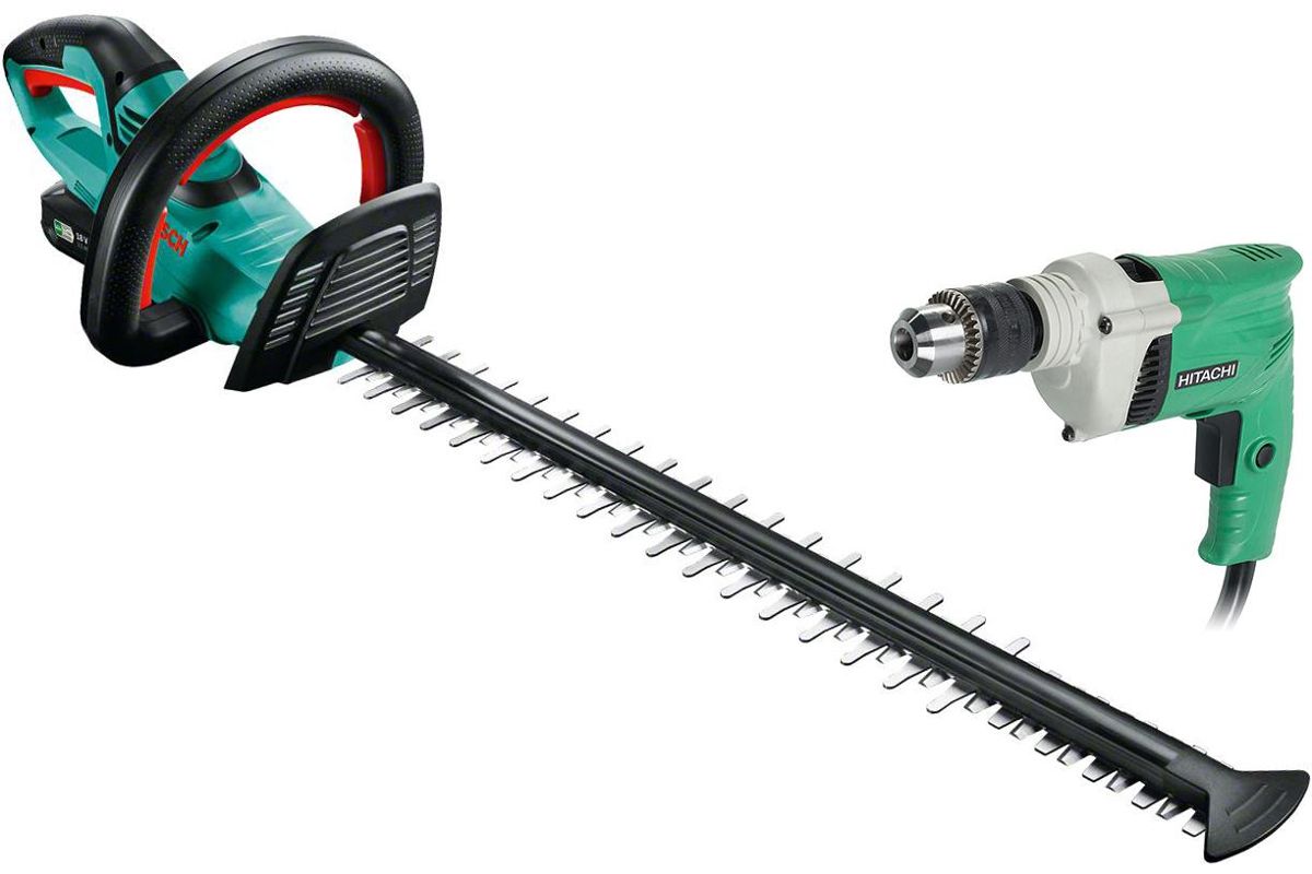 В состав набора входят: Кусторез BOSCH AHS 55-20 Li + секатор (0600849G0B) Акк.+ЗУ 18В Li-Ion 2.5Ач, Дрель ударная HITACHI DV13SSNA ударная дрель 550Вт 2900 оборотов в минуту 29000 уд/мин