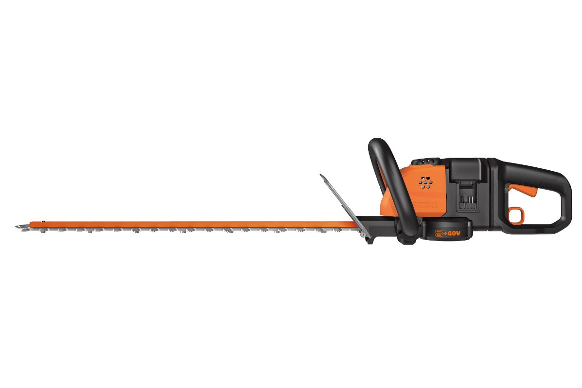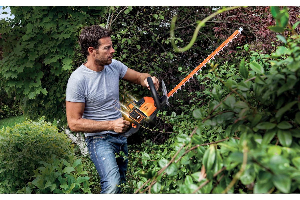 - Аккумуляторный кусторез WORX WG284E, работающий от двух аккумуляторов 20В;