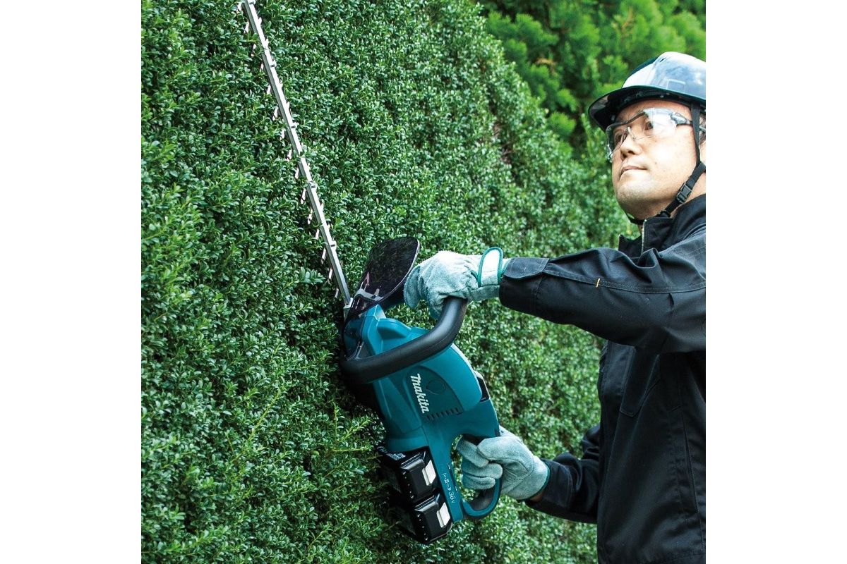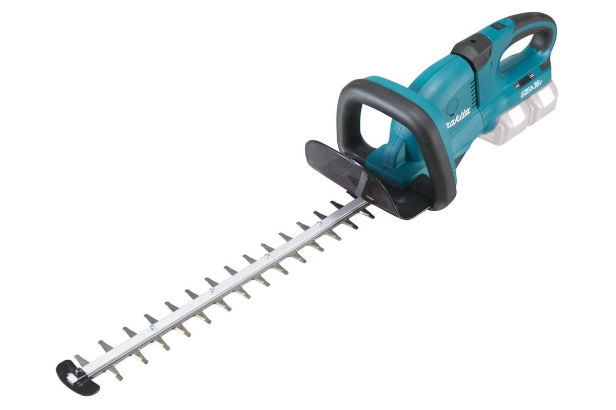 MAKITA DUH551Z – кусторез для ухода за живой изгородью. Длина лезвия 55 см. Максимальная толщина реза 18 мм. Работает от 2 Li-Ion аккумуляторов 18 В. Батареи и зарядное устройство в комплект не входят. Подходит для подрезки кустарника или деревьев.