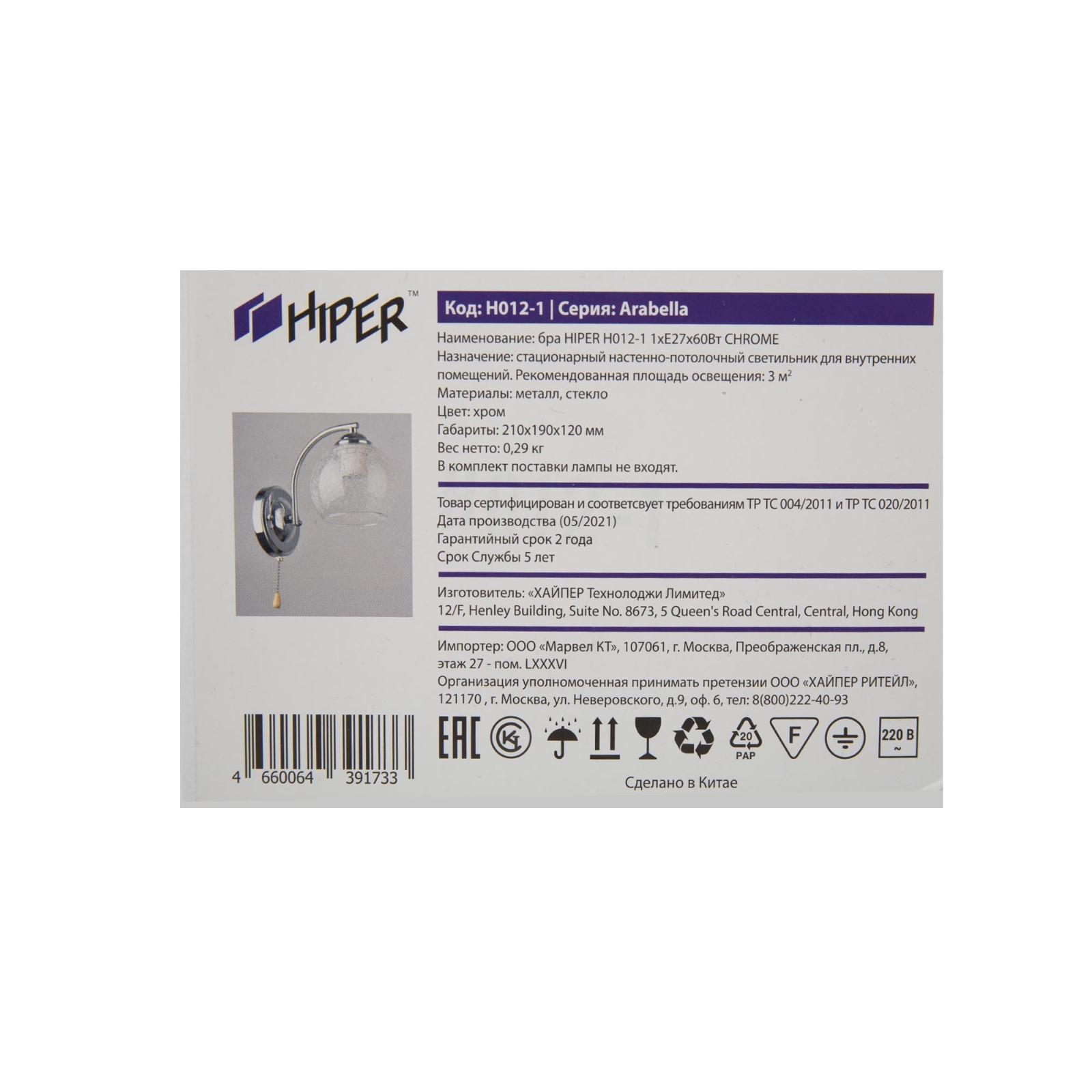 Бра, 60Вт, E27, 21x19x12 см, цвет хром