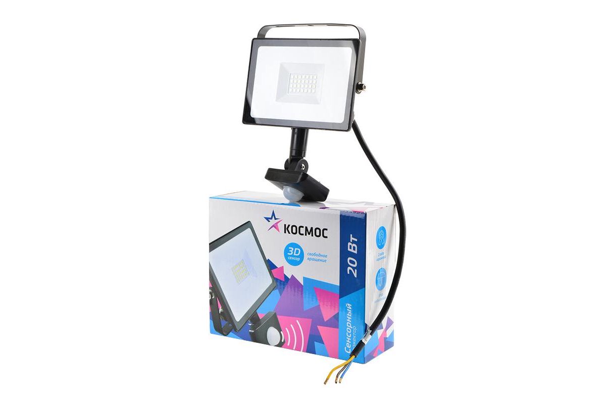 Прожектор КОСМОС 20Вт 1600лм 6500к ip65 с датчиком движения и освещенности k_pr5_led_20s