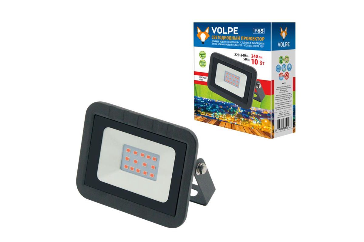 Прожектор VOLPE ULF-Q511 10W/RED IP65 220-240в black светодиодный. красный свет. корпус черный