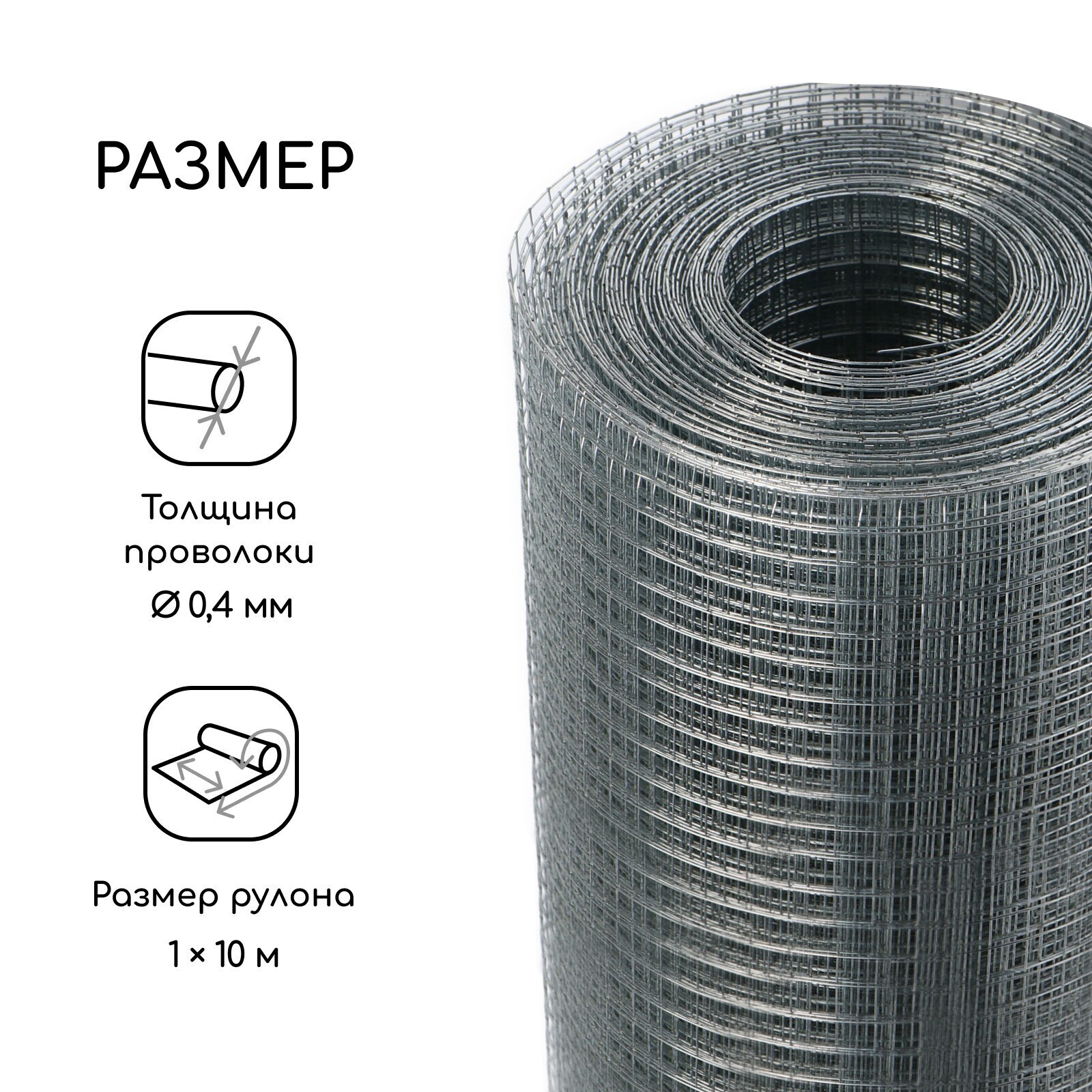 Сетка оцинкованная, сварная, 10 × 1 м, ячейка 6 × 6 мм, d = 0,4 мм, Greengo