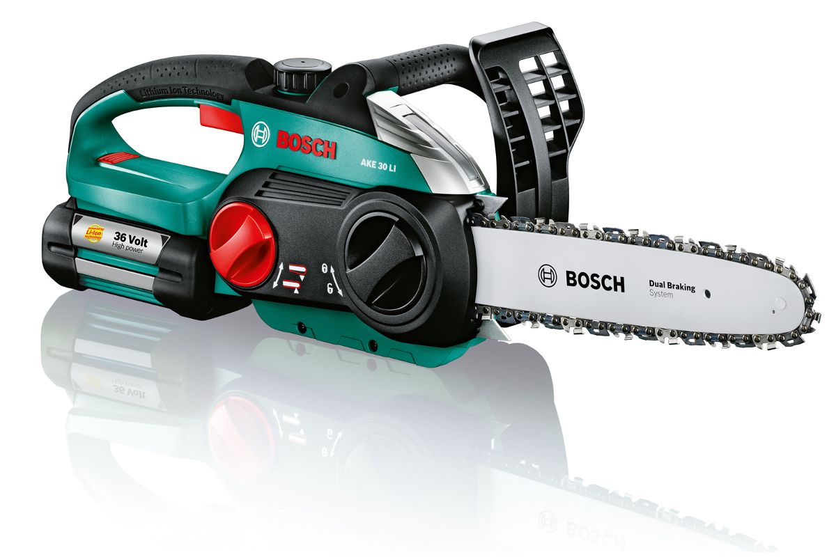 Пила Bosch AKE 30 LI представляет собой прочную и выносливую электрическую цепную пилу, использующую современную литий-ионную технологию. При 30-ти сантиметровой пильной шине, движущейся со скоростью 8 м/с, режущая способность пилы составляет 25 сантиметров. Двигатель пилы развивает высокий крутящий момент, так что при своей компактности пила остается мощным инструментом, готовым выполнять большинство садовых работ. Питается двигатель от мощного аккумулятора на 36 вольт, за счет которого обеспечивается полная свобода передвижения, причем без необходимости следить за кабелем. Аккумулятор пилы Bosch AKE 30 LI полностью заряжается всего за полтора часа, а на 80% от своей полной емкости он окажется заряженным уже через 65 минут. Полной зарядки аккумулятора хватит на то чтобы выполнить до ста распилов размерами 10х10 в древесине типа сосны. 36-ти вольтовый аккумулятор данной модели это один из представителей нового поколения литий-ионных аккумуляторов, которые значительно легче обычных, и поэтому продолжительное использование инструментов с ними менее утомительно. К тому же этот литий-ионный аккумулятор универсален и подходит также к аккумуляторным кусторезам и газонокосилкам Bosch.