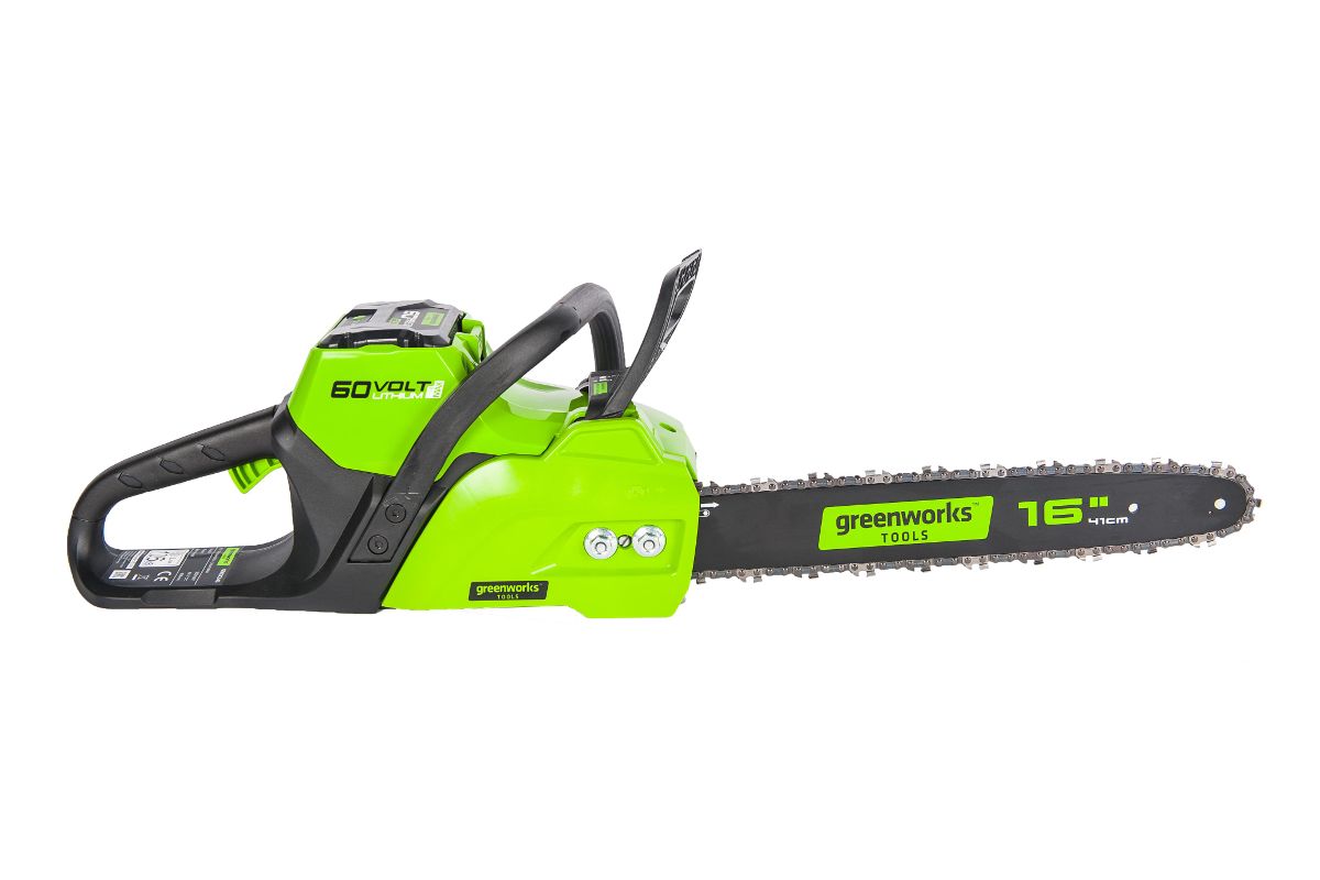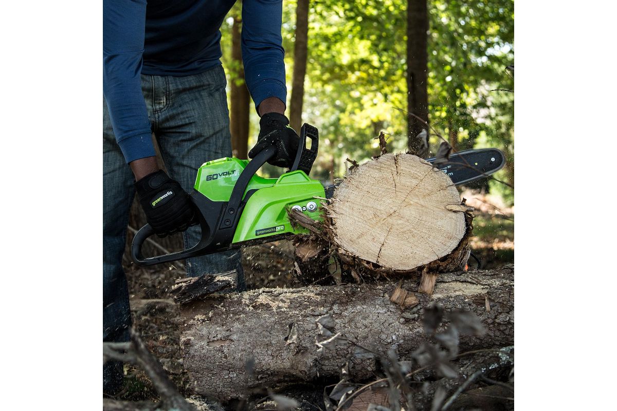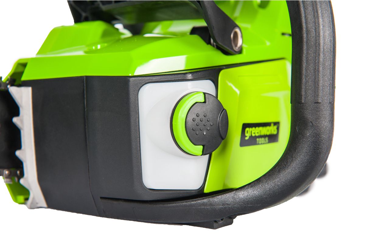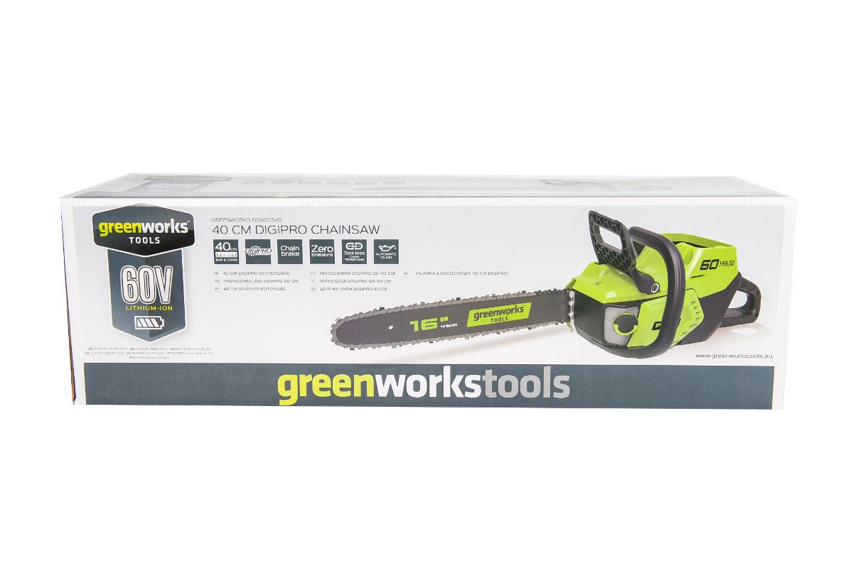 Цепная пила обладает компактным размером, небольшим весом — 5,6 кг, а также долгим временем автономной работы (до 75 распилов от 2 Ач батареи). Шина 40 см изготовлена из кремнистой стали и оснащена цепью производства Oregon. Смазка цепи и шины происходит автоматически, масляный бачок имеет прозрачный корпус для контроля уровня масла. Для защиты от случайного включения предусмотрен предохранитель, пила оснащена тормозом цепи. В комплект входит зарядное устройство и батарея 2 Ач 60V, которая может использоваться в других устройствах Greenworks 60V, что позволит в дальнейшем сэкономить на покупке дополнительных аккумуляторов.