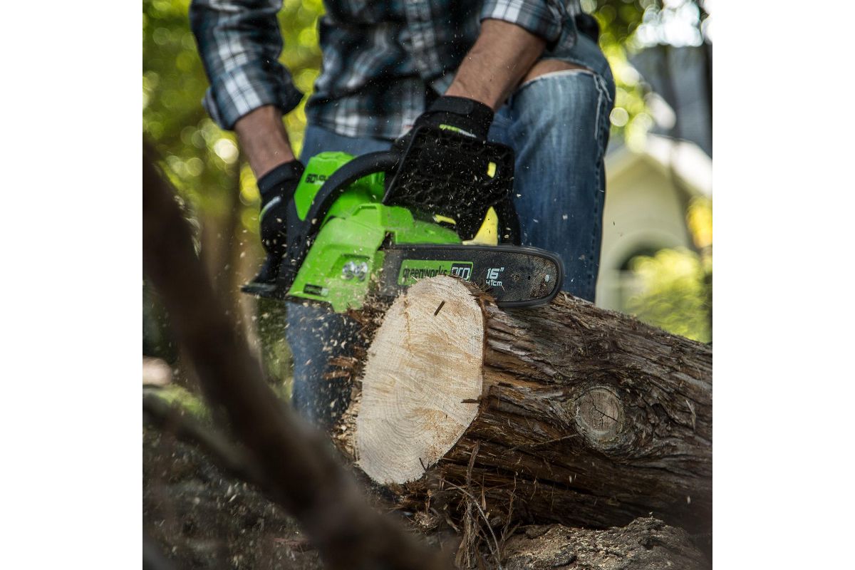 Цепная аккумуляторная пила Greenworks GD60CS40K2 из линейки устройств 60V — инструмент профессионального уровня, который отлично подойдет для решения бытовых и профессиональных задач, работающий от аккумулятора 60 вольт.