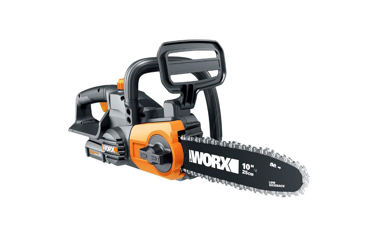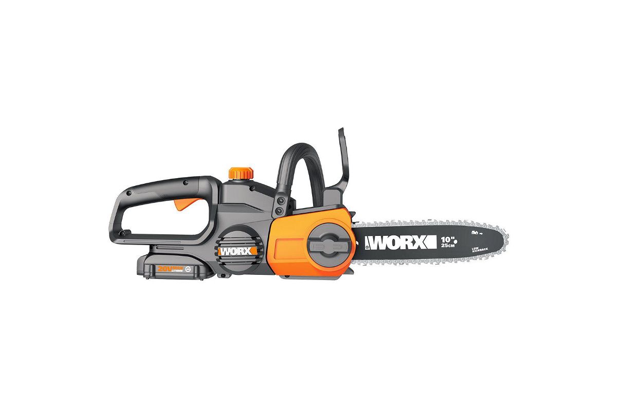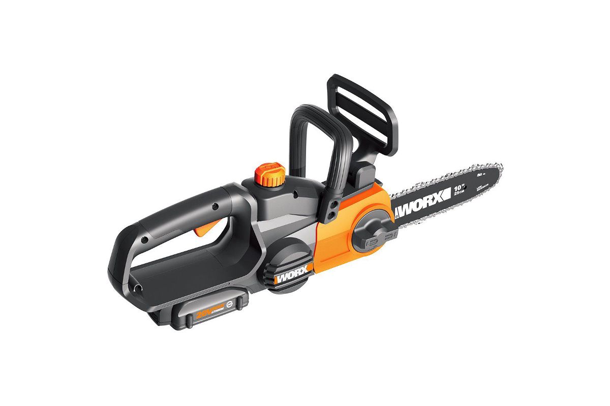 WORX WG322E – аккумуляторная цепная пила для распила деревьев, срезания веток, ухода за кустарниками или разрезания строительных материалов. Работает от Li-Ion аккумулятора 20 В. Длина шины 250 мм. Пригодится на даче, придомовом участке, в саду или за городом.