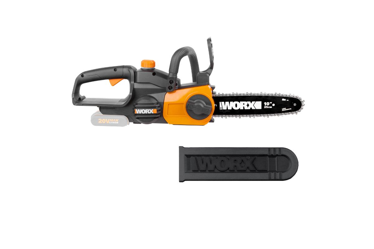 WORX WG322E.9 – компактная и лёгкая цепная пила. Работает с шиной длиной 25 см. Подходит для бытового использования на приусадебном участке. Поможет спилить ветки, обрезать сучья и подготовить дрова. Поставляется без батареи и зарядного устройства.