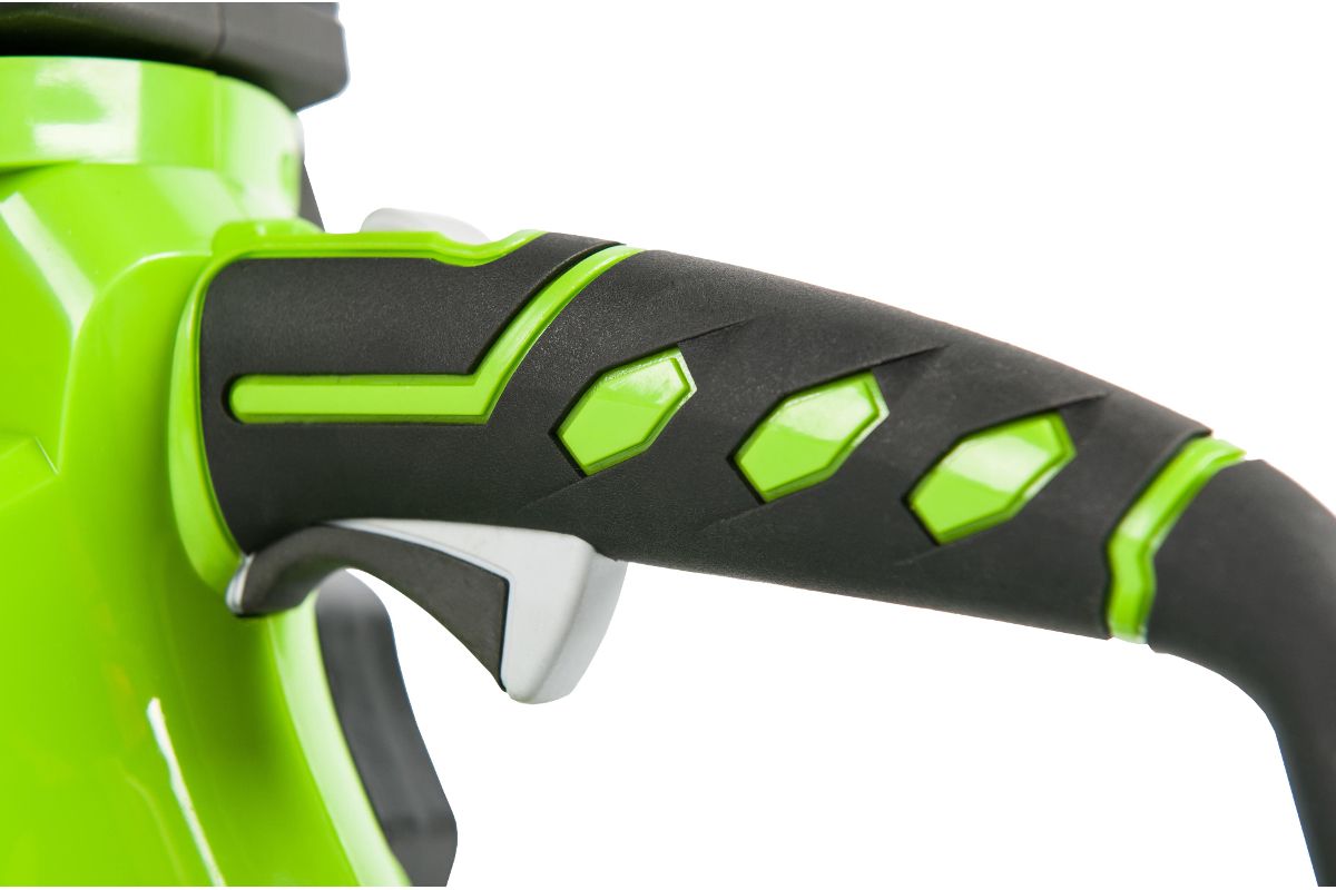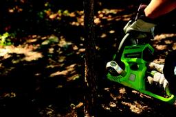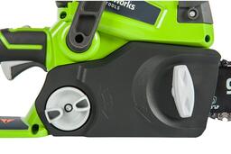 Цепная аккумуляторная пила GreenWorks G24CS25 24 вольт - небольшая, легкая (всего 2,7 кг.) садовая пила. Благодаря ее компактным размерам она легко помещается в багажнике автомобиля или даже в рюкзаке. Это отличный выбор для подрезки толстого кустарника или сучков, пиления бревен, а также подойдет рыбакам, охотникам и любителям походов. Пила оснащена шиной из кремнистой стали длиною 25 см и цепью производства компании Oregon.