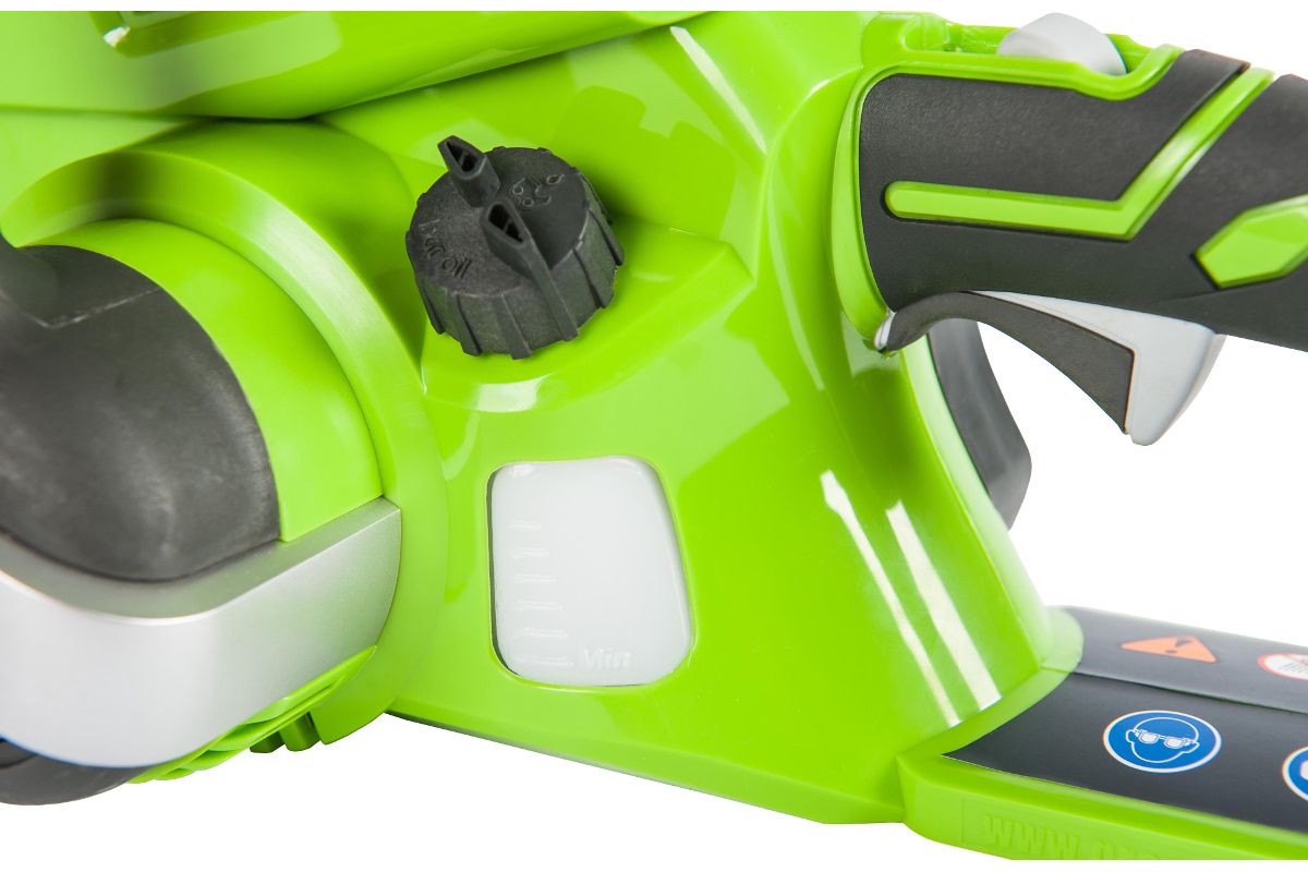 Для работы с этой пилой вам не нужно тратить время на подготовку масляно-бензиновой смеси, ''дергать'' стартер - пила готова к работе нажатием одной кнопки. Более того, так как двигатель электрический - он не требует обслуживания (например замену свечей, масла и фильтров), а также пила чистый и экологичный продукт, не загрязняет воздух, меньше шумит и вибрирует, вы не дышите выхлопными газами.