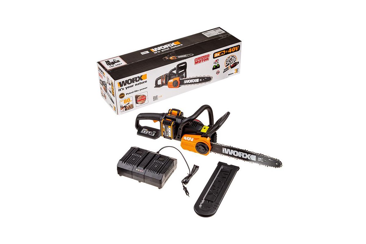 WORX WG384E – аккумуляторная цепная пила. Рассчитана на заготовку дров, обрезку веток и валку небольших деревьев. Будет полезна на даче, ферме или на приусадебном участке. Длина шины – 35 см, шаг цепи – 3/8”. Аккумуляторы – в комплекте.
