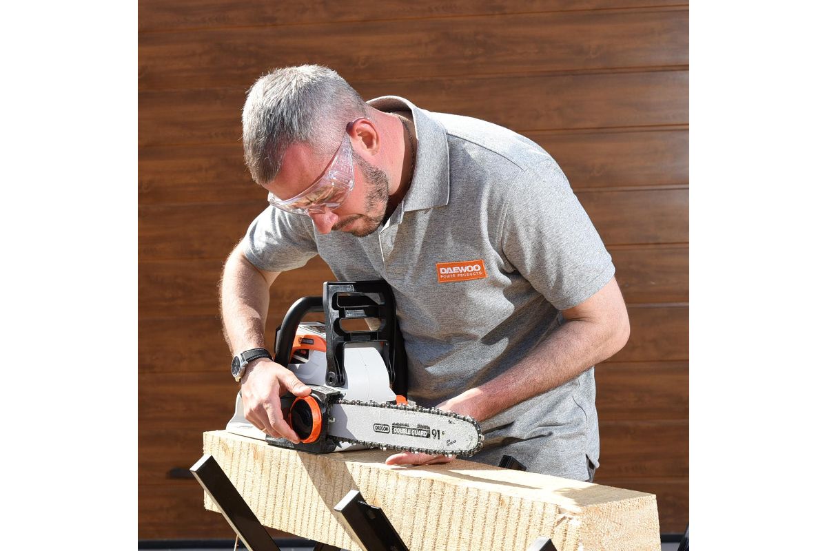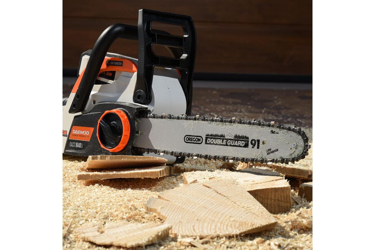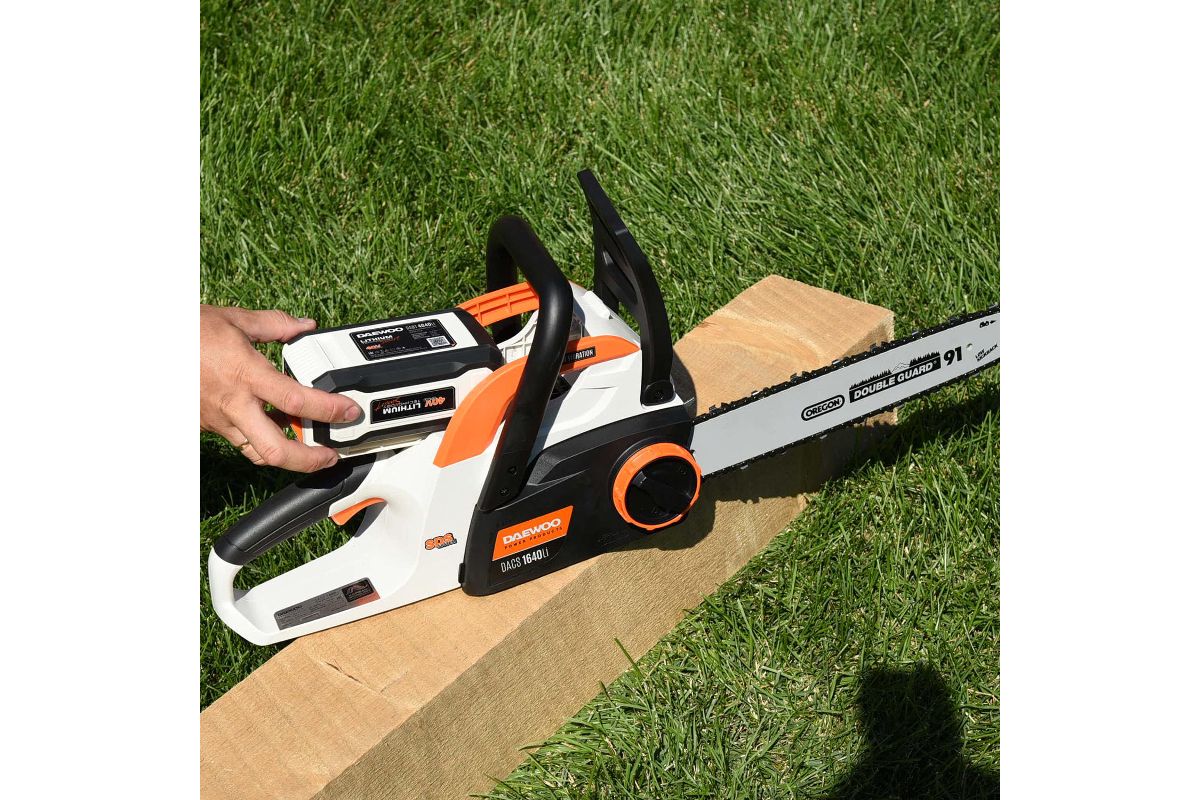 DAEWOO DACS 1640Li – аккумуляторная цепная пила для распила деревьев, заготовки дров и ухода за садом. Длина шины 350 мм. Работает от Li-Ion аккумулятора 40 В. Аккумулятор и зарядное устройство приобретаются отдельно. Пригодится на даче, ферме или в саду.