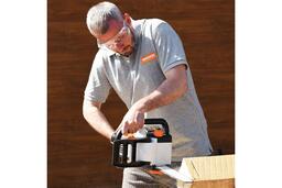 Зубчатый упор облегчает работу. Прижмите его к дереву, чтобы зафиксировать рез.