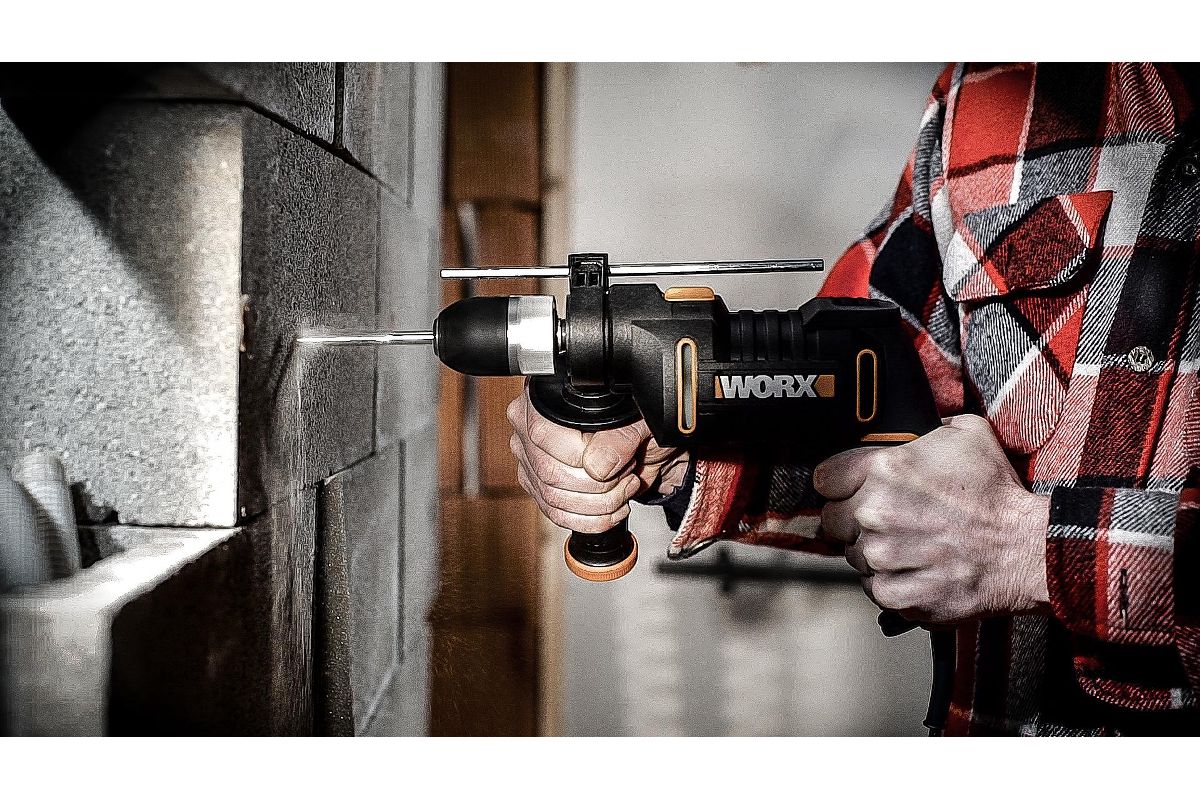 WORX WX317.2 работающая от сети 230В универсальная, ударная, компактная дрель мощностью 600Вт.