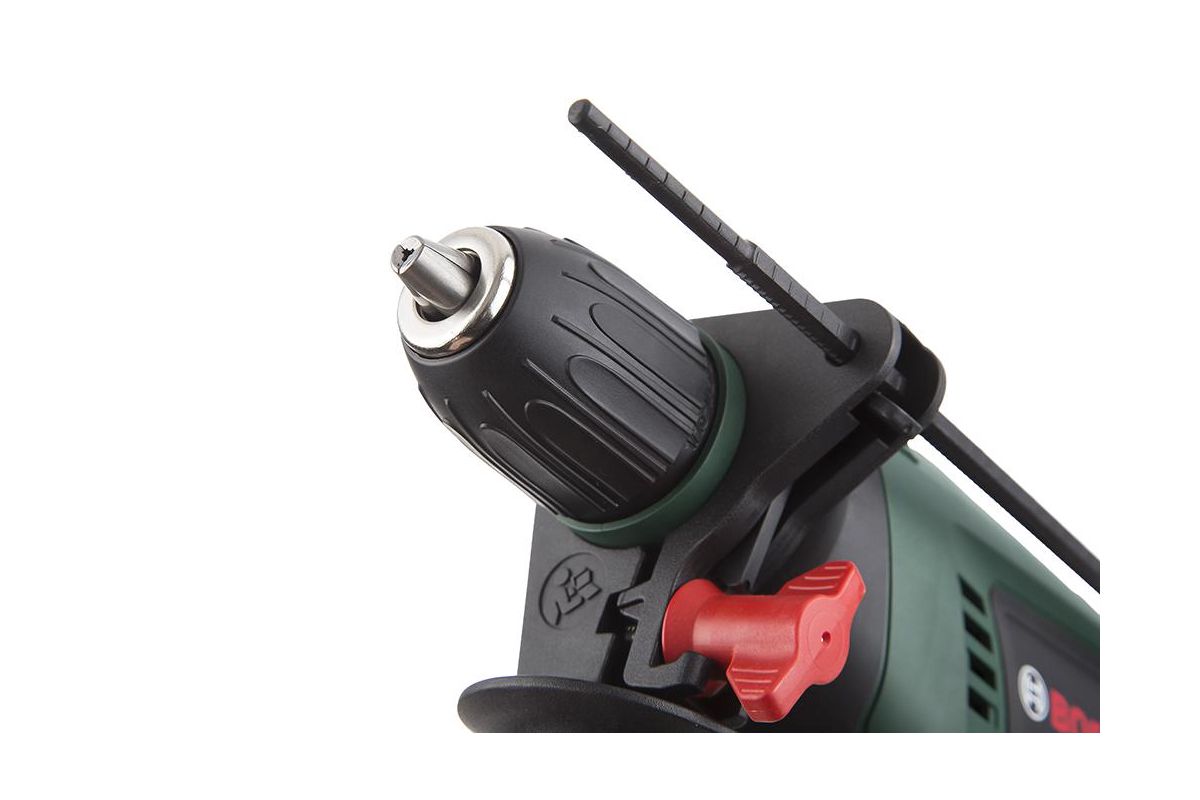 Ударная дрель Bosch UniversalImpact 700 0.603.131.020 оснащена переключателем функций ''заворачивание/сверление/сверление с ударом''. Система Bosch Speed-Preselection позволяет регулировать частоту вращения с помощью колесика и кнопочного выключателя, настраиваясь на работу с конкретным типом материала. Благодаря быстрозажимному патрону с опцией Press&Lock блокировка шпинделя осуществляется одним нажатием кнопки - это позволит быстро заменить оснастку. Для комфортного захвата инструмента без проскальзывания предусмотрены мягкие накладки Soft-Grip.